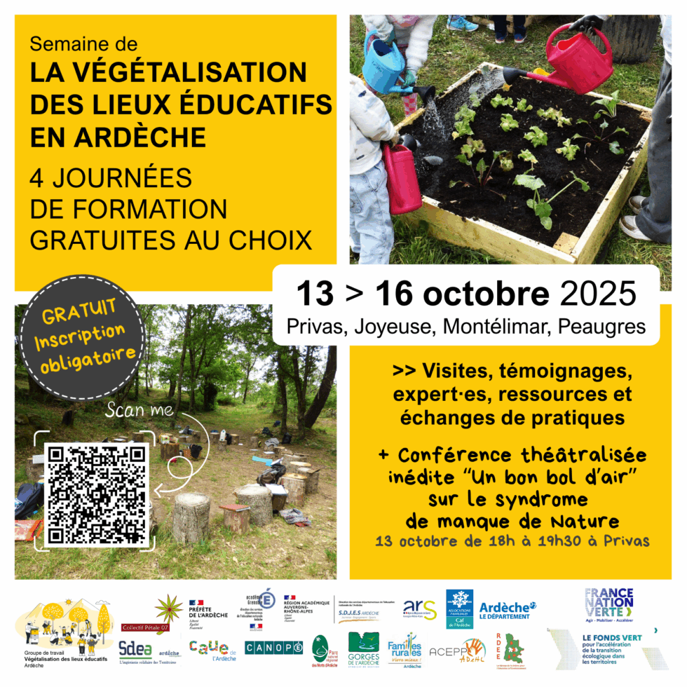 Le Groupe de travail végétalisation des lieux éducatifs en Ardèche vous invite à participer à la semaine de la végétalisation des lieux éducatifs du 13 au 16 octobre 2025 à