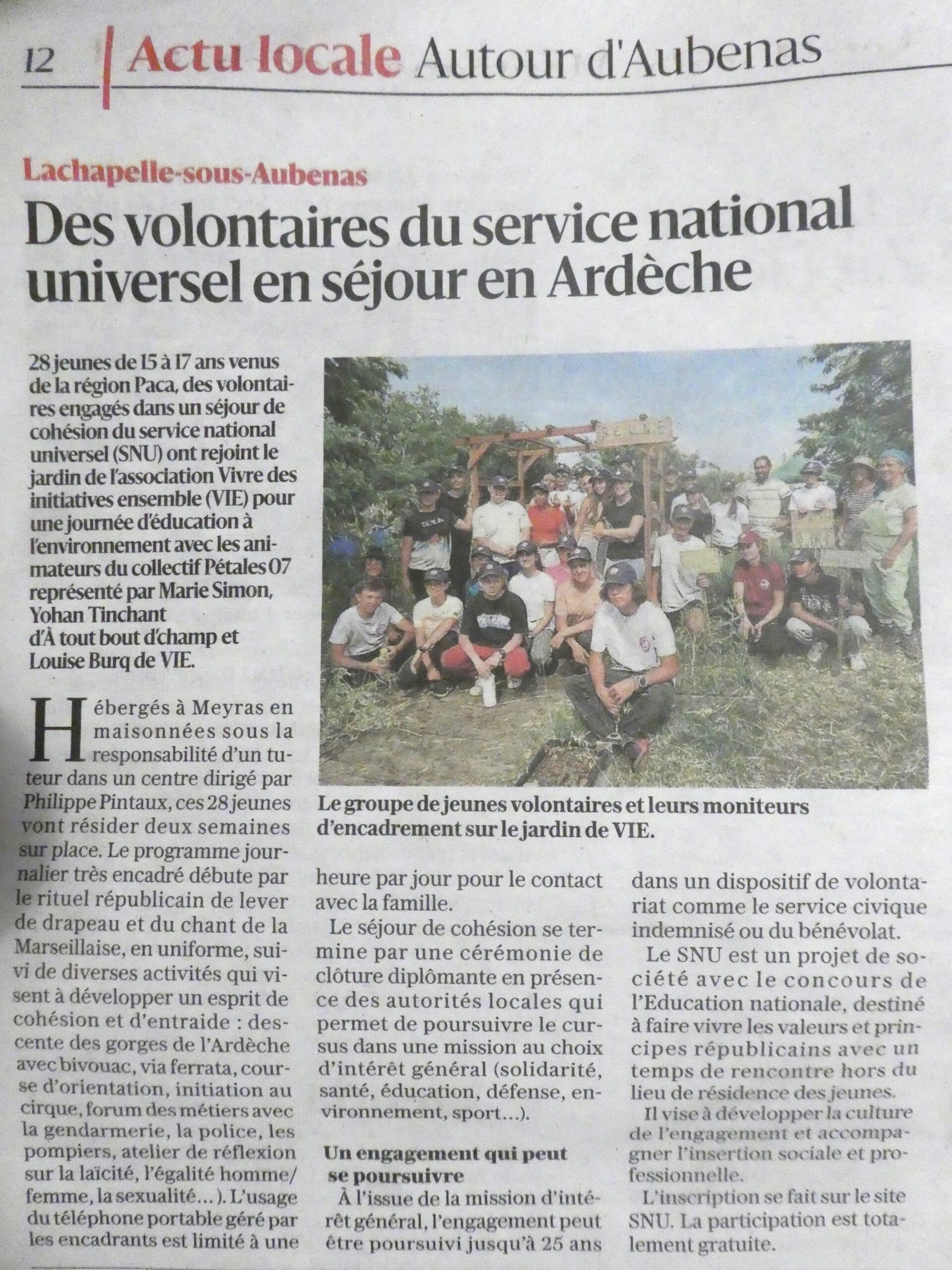 Le Dauphiné c’est rendu au jardin de VIE retrouvez l’article ici et celui sur le programme SNU parut dans la Tribune !