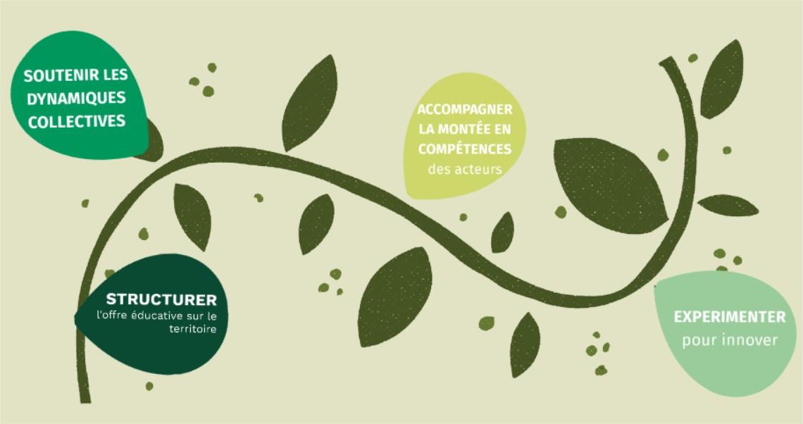 Face aux enjeux environnementaux et sociaux et dans la perspective des objectifs de développement durable de l’Agenda 2030 des Nations Unies, les groupes de travail tissent des liens avec l’ensemble des acteurs éducatifs ardéchois. Ce réseau d’acteurs développe une gestion mutualisée des ressources et s’appuie sur des méthodes de travail et des outils collaboratifs. Chacun veille à privilégier le contact avec la Nature, à développer des pédagogies actives, à favoriser les démarches participatives et la réflexion collective.