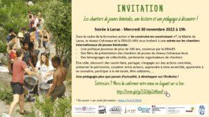 30 novembre 2022 - Soirée à Lanas “Les chantiers de jeunes bénévoles, une histoire et une pédagogie à découvrir !”