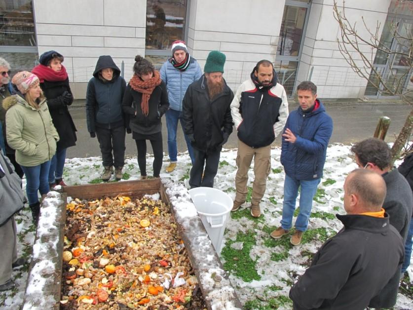 Les participants ont eu l’occasion de visiter des sites de compostage, d’écouter le témoignage de la personne en charges de celui-ci, mais aussi, de leur permettre de poser leurs questions sur son fonctionnement et d’en faire un diagnostic. Les participants ont emmené leur compost pour que par groupe chacun puisse en faire son diagnostic, ils ont également pu apprendre à l’utiliser au jardin et enfin finir par imaginer leur site de compostage idéal.