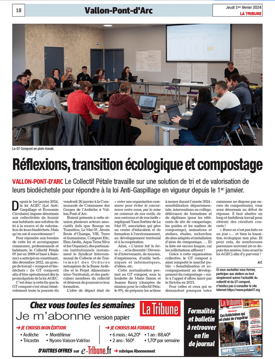 Découvrez les articles de presse qui suivent les actions du GT compost du Collectif Pétale 07 !