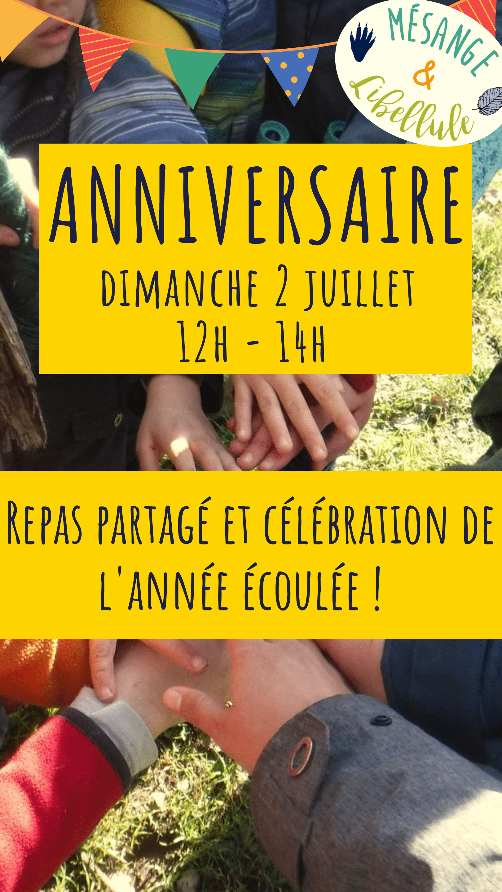 ✨ Le dimanche 2 juillet, Mésange et Libellule fêtera ses 5 ans au P’tit Bois de St Sernin !