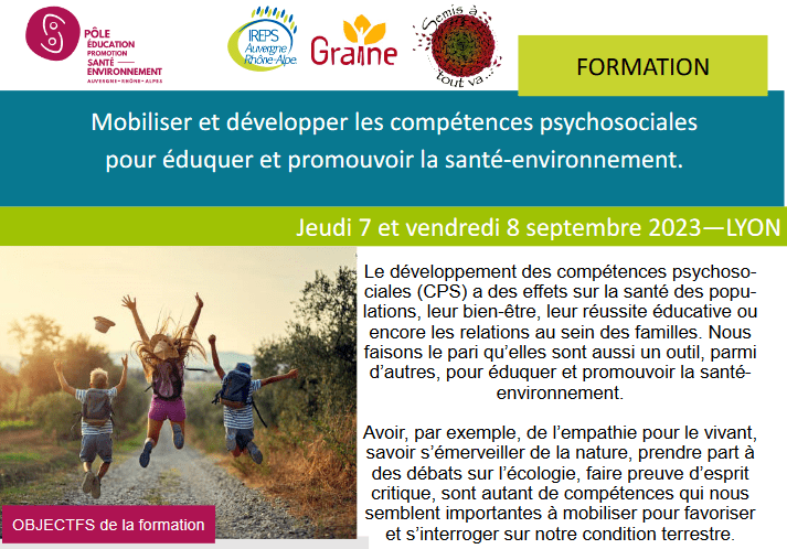 Formation : Mobiliser et développer les compétences psychosociales pour éduquer et promouvoir la santé-environnement.