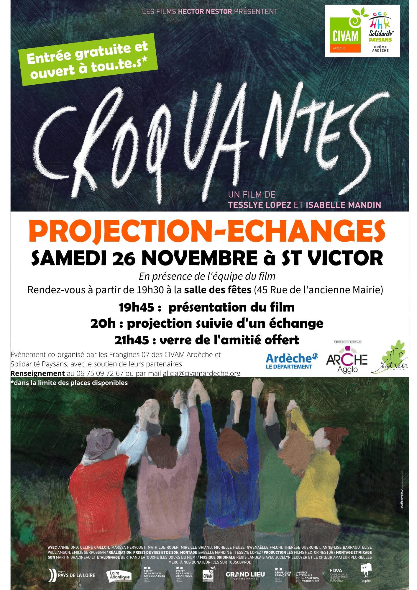 Projections-échanges gratuites du documentaire « Croquantes » samedi 26 novembre à St Victor