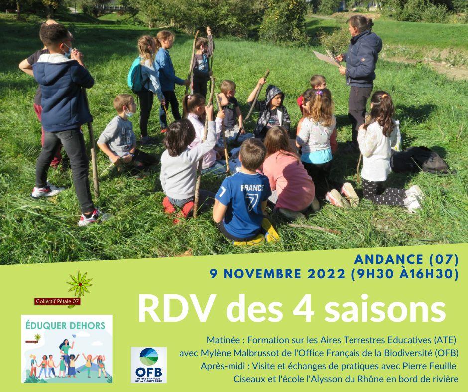 Un nouveau rendez-vous des 4 saisons le 9 novembre 2022 du groupe de travail Éduquer Dehors à l’école primaire d’Andance, sur le thème des aires terrestres éducatives.