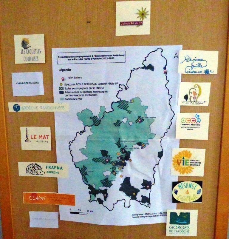 Tout ceci n’aurait pu se faire sans un soutien au plus proche du terrain d’Éléonore Jacquiau Chamska (PNRMA). Nos partenaires institutionnels, Fabrice Gouedo (ARS), Pierrick Ponsonnet (SDJES), Nelly Dejours (DSDEN) et Isabelle Fontaine (AGEMM), ont accompagné nos temps de travail et nos RDV des 4 saisons, contribuant ainsi à valoriser de nouvelles pratiques éducatives. Plus ponctuellement, des personnes ressources (conseillers pédagogiques à la DSDEN, réseau Canopé, ACEPP, OCCE 07, Cermosem,…) se sont impliquées dans nos travaux et ont permis de les faire connaître sur l’Ardèche.