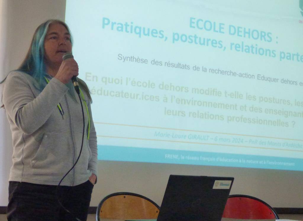 Marie-Laure Girault (FRENE), chercheuse en sciences de l’éducation, a présenté le travail réalisé par la dizaine d’éducateurs à l’environnement du collectif Pétale 07.